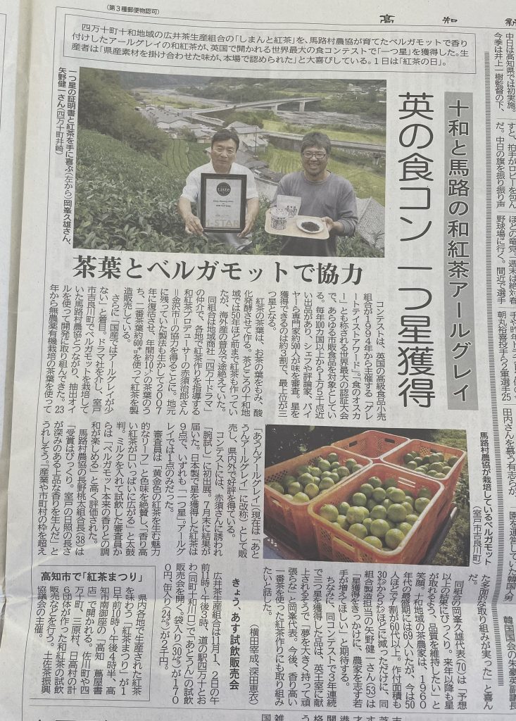しまんと紅茶をベースにした高知県産アールグレイが、紅茶の本場英国で認められるという快挙を成し遂げました。
