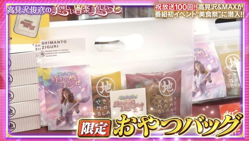 放送では残念ながらカットされていましたが、実は!広報担当栗ガール佐竹が特に力をいれた特別ステッカー入り「おやつバッグ高見沢メシスペシャル」も気に入ってくださり、ご本人もお土産に持ち帰って下さったことはここだけの秘密です。